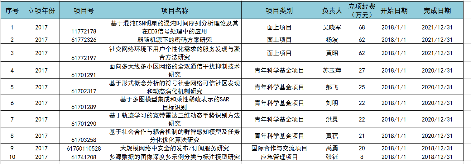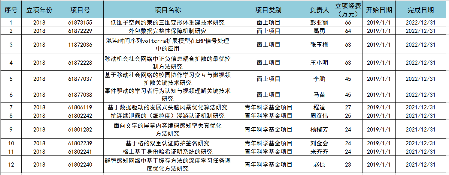 财神捕鱼 承担国家自然科学基金项目一览表(更新至2018年12月)