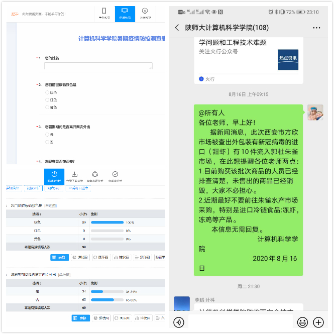 通过微信群、问卷调研、电话联络等方式,及时发布消息,落实相关信息,做到疫情防控稳中有序。