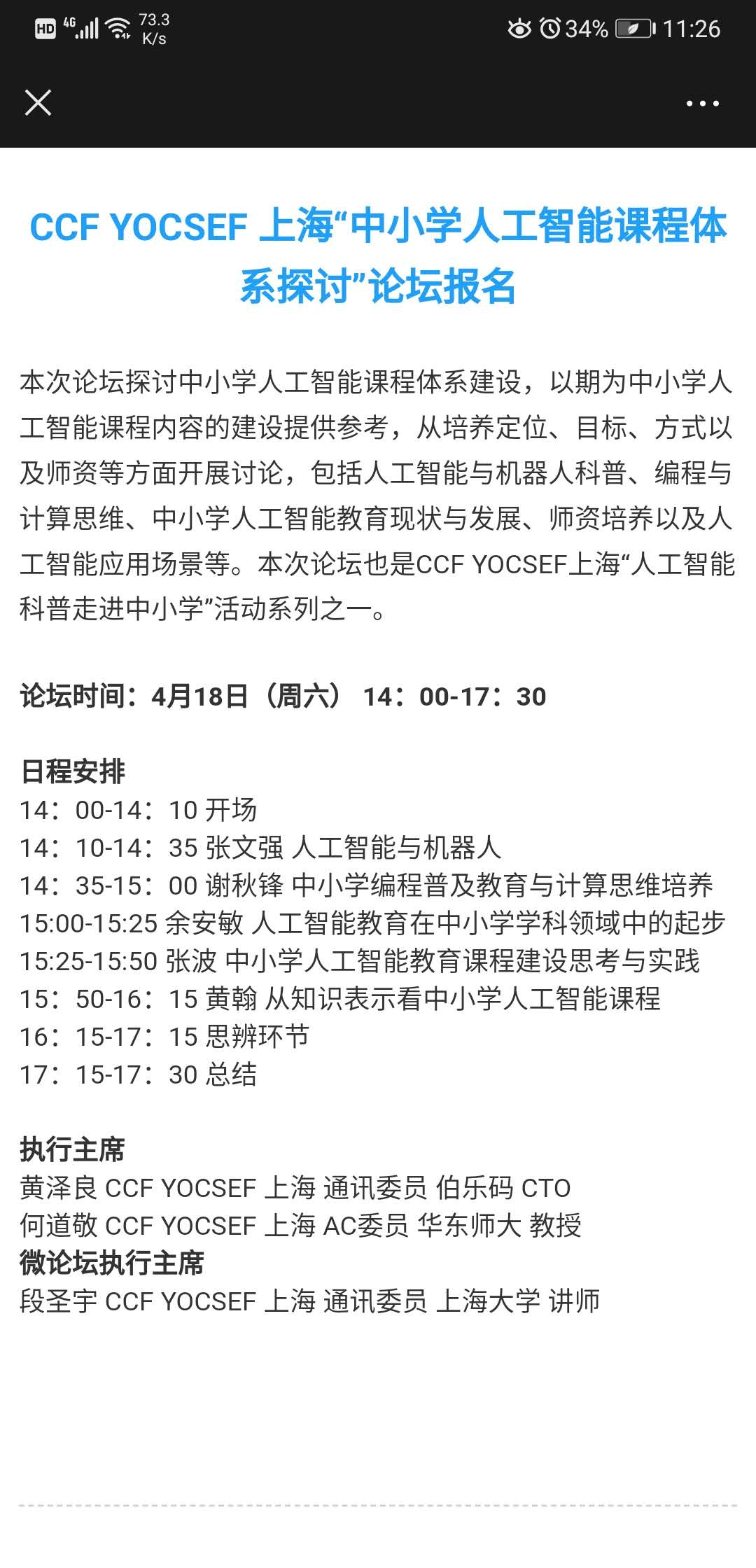 2020年4月18日,由中国计算机学会青年计算机科技论坛主办的“中国中小学人工智能课程体系研讨”会议通过网络在线举行。该会议主要探讨中小学人工智能课程体系建设、培养定位、师资培训、机器人科普、编程与计算思维培养等问题。在会议上作报告的有复旦大学智能机器人研究院副院长张文强教授、CCF杰出演讲者、中学高级教师谢秋锋老师等多位从事人工智能研究与人工智能基础教育的专家学者。财神捕鱼