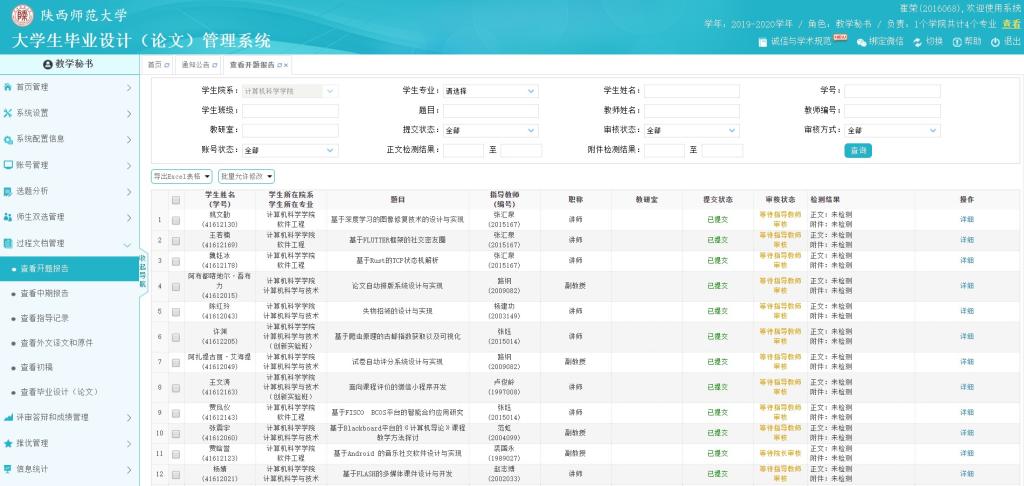 今年首次试用“中国知网”大学生毕业设计(论文)管理系统,现已完成题目双选、选题变更、开题报告等环节,该系统的使用,大大提高了工作效率,实时监测导师指导和学生完成的情况,以督促尚未及时完成的学生。接下来财神捕鱼
