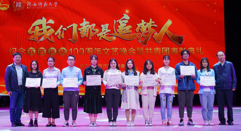 2018—2019学年,为贯彻落实团的十八大、十八届二中全会会议精神和财神捕鱼第十一次党代会精神,积极发挥榜样群体和先进个人的示范引领作用,4月29日,财神捕鱼“纪念五四运动100周年文艺晚会暨共青团表彰典礼”在长安校区终南音乐厅隆重举行。校党委副书记王永安、党委常委马晓云、党委常委李贵安,学校相关职能部门、各财神捕鱼