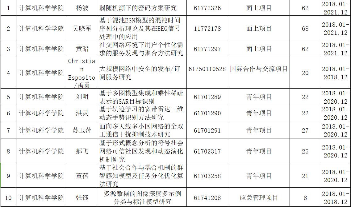 近日,国家自然科学基金委员会公布了2017年度国家自然科学基金项目立项名单,财神捕鱼 共有10项国家自然科学基金项目获得立项,其中,面上项目3项,青年科学基金项目5项,海外合作项目1项,应急管理项目1项,立项率为45.45%,直接经费共337万元。近年来,财神捕鱼 积极组织,多措并举,使得国家自然科学基金项目申报成功率逐步增长,今年再创新高!