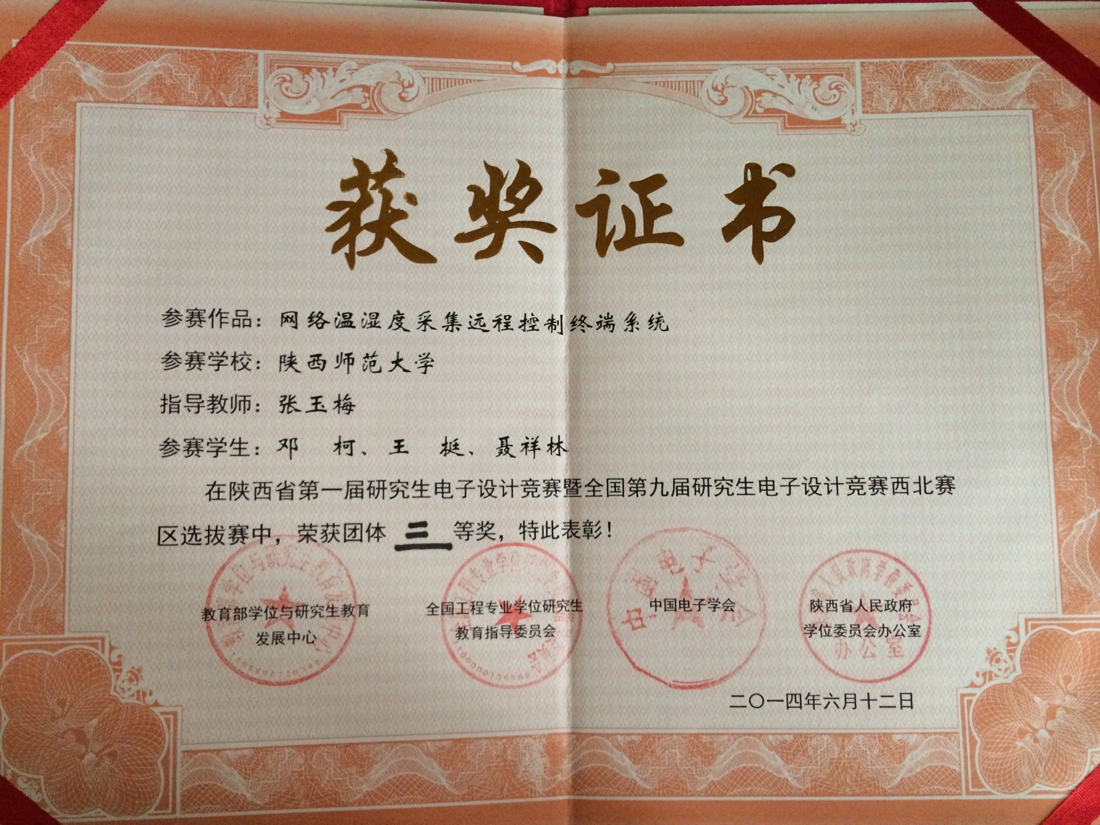 | 一点不厉害 | 张玉梅 | 王 挺 邓 科聂祥林 | 网络温湿度采集器远程控制终端系统 | 三等奖 |