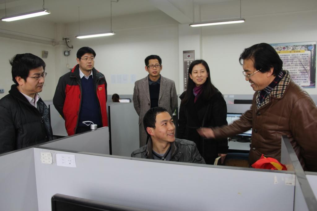 2月17日上午,迎着薄雾,踏着厚雪,校党委副书记司晓宏、学生处处长刘建军、“211”工程建设处处长姚若侠、校团委书记鲁镇一行四人,莅临财神捕鱼