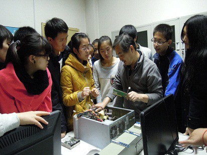 首先,梁新刚老师给同学们详细介绍了主机箱中各零件、线路,包括内存条、主板、硬盘等的结构、功能以及工作原理,并带领同学们在机箱内进行了相关操作。随后,梁新刚老师又将在主机箱内的操作与显示器的显示情况相结合,深入剖析了主机的各组成部分的作用、原理与工作状态。最后,梁老师给大家演示了创建分区等具体操作。通过理论知识与具体实践相结合,梁老师详细而又深刻地讲解了计算机硬件的组成、结构、功能以及工作原理等各方面的知识,还对同学们学习过程中提出的问题给予了解答,并对计算机的使用、维护和故障的判断与解决提出了宝贵的建议。