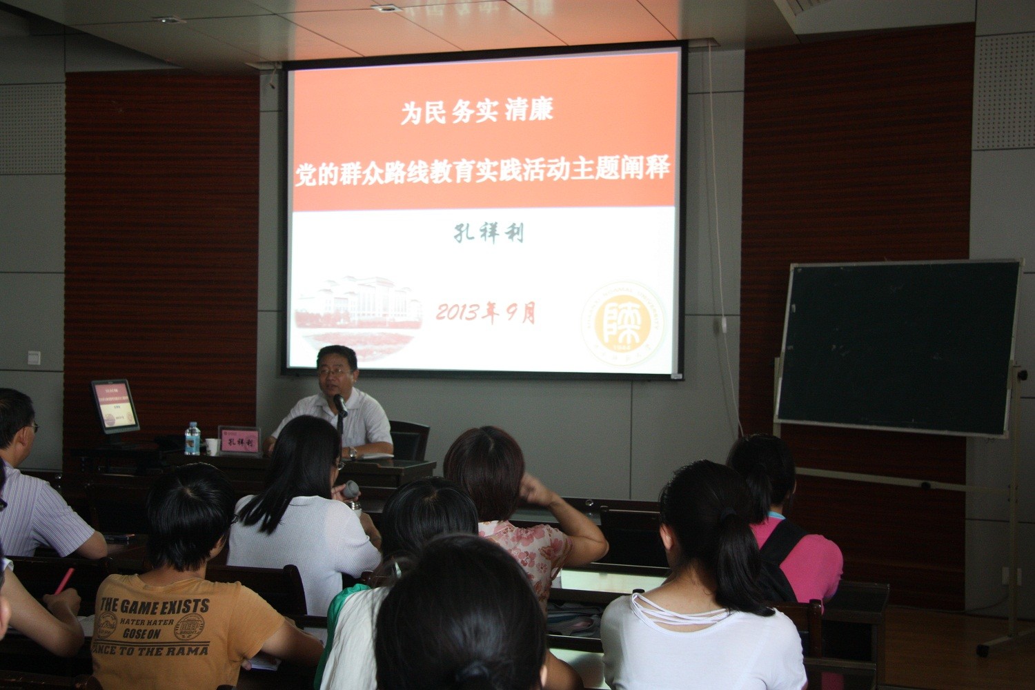 党政领导班子成员、教师党员、学生党员代表聆听了报告。 报告中,孔教授以“为民务实清廉”为核心,从三个方面阐释了党的群众路线教育实践活动的主题。在对“为民务实清廉是党的群众路线时代内涵”的阐述中,孔教授谈到“一切为了群众、一切依靠群众,到群众中来,到群众中去”,是我们党坚持贯彻执行群众路线的经典论述,而现如今,党正面临着执政、改革开放、市场经济和外部环境四大考验,党员干部也面临着精神懈怠、能力不足、脱离群众、消极腐败四大危机。他以苏共为例,深入剖析了党的群众路线的重要性,而深入开展以为民务实清廉为主题的党的群众路线教育实践活动,是实现党的十八大群定的奋斗目标,保持党的先进性和纯洁性,巩固党的执政基础和地位的必然要求,是我党聚人气、顺民意、促改革的重要途径和举措。 接着,孔教授就如何深入理解为民、务实、清廉做了详尽的阐释。为民是坚持党的群众路线的目的。一切为了人民,是我们共产党人的最高追求,中国革命的胜利也正是遵循了得民心者的天下的朴素道理;务实是坚持党的群众路线的途径。如今在部分党员干部当中,形式主义和官僚主义问题还比较明显,享乐主义和奢靡之风仍有不同程度的表现,并具体分析了财神捕鱼在“四风”问题上还存在的问题;清廉是坚持群众路线的保障,党和国家领导人经常在各种场合号召我党干部保持清廉的作风。 最后,孔教授号召在座的党员同志们,要牢牢把握为民务实清廉的活动主题,在开展党的群众路线教育实践活动中,牢固树立“师生为本”的理念,坚持重实际、求实效,解决师生关系的实际问题,做到风清气正。 孔教授的报告受到了在场师生的热烈欢迎和强烈共鸣。通过孔教授对党的群众路线教育实践活动主题的阐释,大家对此项活动有了更加深入的认识,并表示一定按照中央及学校 |
