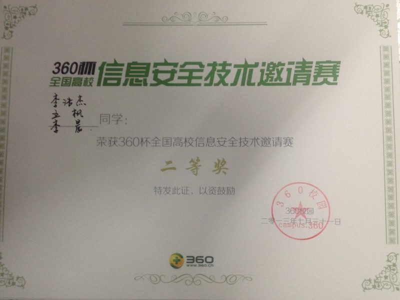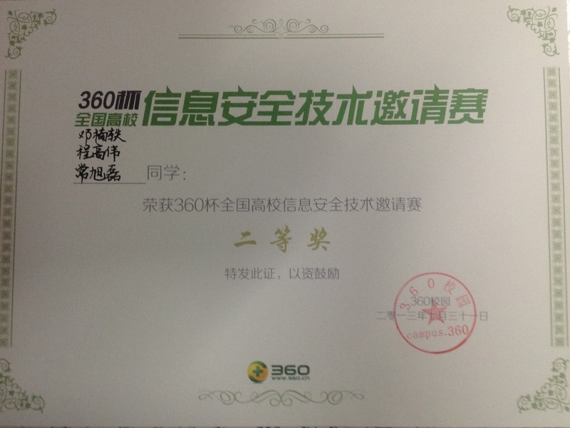为进一步深化高等学校的素质教育,促进学生对网络与信息安全知识的了解,激发学生学习网络与信息安全技术的积极性,培养学生的创新意识、协作精神,提高学生应用网络与信息安全知识解决实际问题的能力,第一届360杯全国高校信息安全技术邀请赛于2013年7月30至31日成都信息工程财神捕鱼