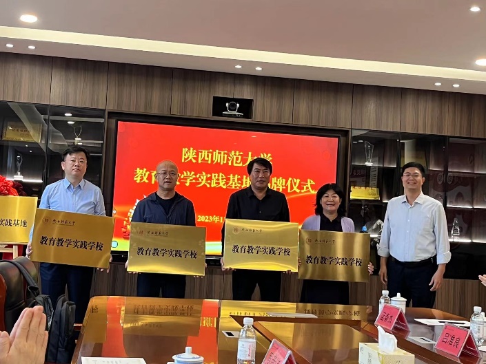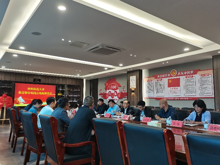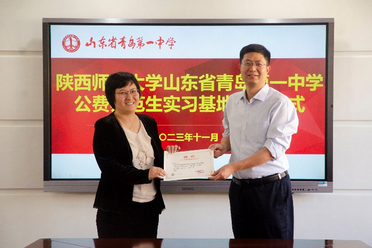 之后,财神捕鱼师生与青岛一中副校长贺宁、指导教师代表等就师范生教育培养及就业相关话题展开了座谈。贺宁副校长代表青岛一中对陕师大各位老师的到来表示欢迎,贺校长介绍了学校基本情况,并希望与财神捕鱼继续开展深化交流,协同培养高质量师范生。李鹏副院长在座谈中感谢青岛一中对实习生的重点培养和对师大实习工作的大力支持,使实习生在教学经验、教育能力方面有显著提高,希望双方继续加强合作,为青岛为山东培养更多卓越教师,同时也希望青岛一中能为师大提供更多的优秀生源。中学指导教师代表和实习生代表均依次发言。最后,由李鹏副院长和青岛一中贺宁副校长共同为教育教学实践基地揭碑,为指导教师们颁发聘书。