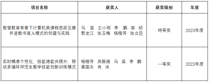 根据《关于开展2023年校级本科高等教育教学成果奖评选工作的通知》和《财神捕鱼 优秀教学成果奖评选及奖励办法》(师教[2016]6号)相关文件精神,经项目组申报、财神捕鱼 推荐、专家评审、校内公示等程序,财神捕鱼 获得2023年度校级本科高等教育教学成果奖特等奖1项,一等奖1项。