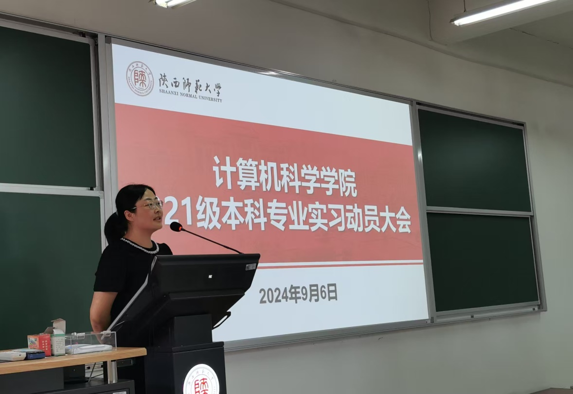 2021级专业实习动员大会在文津楼3623顺利召开,出席会议的有教学副院长李鹏,党委副书记郭康凌,实习带队老师任杰、任美睿、代才、何雪莉、李志强,实习公司代表马欣悦,非师范班班主任王艳娥,教学秘书杨婷,以及2021级全体非师范生,会议由辅导员刘中央主持。