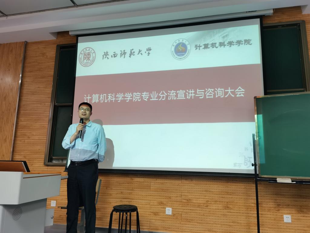 于雁塔校区教学五楼举办专业分流宣讲与咨询大会,本次咨询大会由李鹏副院长主持,全体2020级财神捕鱼
