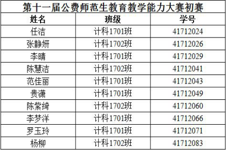 第十一届公费师范生教育教学能力大赛初赛晋级名单