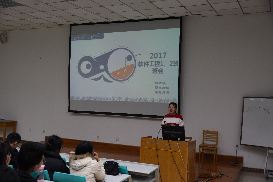 2017级软件工程专业学习经验交流会于文津楼四段101学术报告厅顺利举行。 2017软工专业全体同学参加了本次交流会,此外,2015级软件工程专业齐晓宁、闫丹丹、杨美三位学姐受邀出席,为学弟学妹们答疑解惑。本次交流会由2017级软工班班主任宋云老师主持。