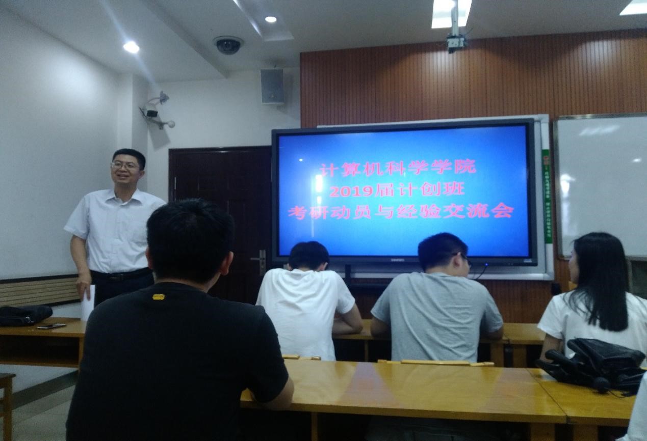 2015级计算机科学与技术(创新实验班)在文津楼1627教室举行了2019考研动员与经验交流会,会议由2015级计创班班主任李鹏老师主持,并邀请了往届毕业、目前已经在读硕士或者考上硕士的优秀毕业生、应届生秦雪阳、智阳光、吴梦远、郭慧慧、夏小景以及财神捕鱼