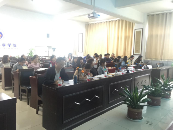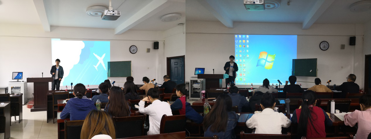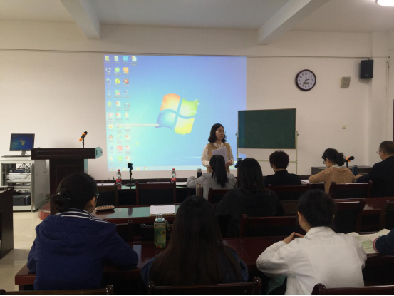 报告厅成功举办。此次比赛由教学秘书崔荣老师主持,张麦侠、路纲、杨楷芳以及苏玉萍等四位老师担任评委,辅导员吉晨晓老师以及2015级全体师范生到场观看。