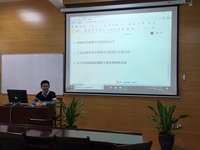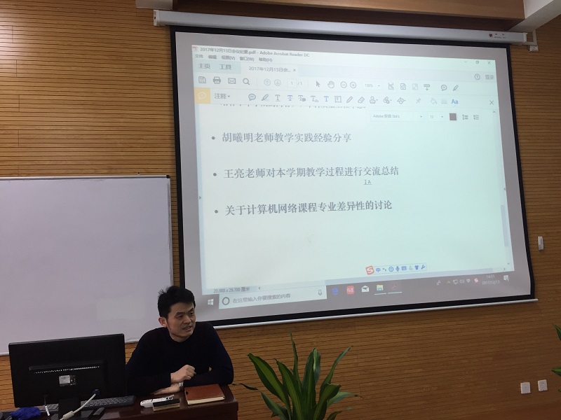 最后,王亮老师针对本学期承担的计算机网络课程的教学全过程进行了汇报和总结,提出了自身在本学期教学过程中所遇到的一些困惑和问题。团队吴振强教授和李顺东教授分别提出了自己的指导意见。