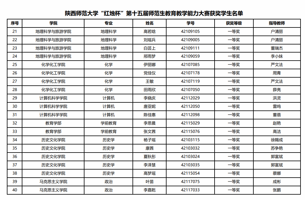 洪灵、雷鸣、董蓓三位老师指导的2021级公费师范生李晓庆、唐亚妮、陈佳惠等3人荣获一等奖,薛铮、陈诗瑾、李子焱等3人荣获二等奖,唐义东、孙玲芳等2人荣获优秀奖。
