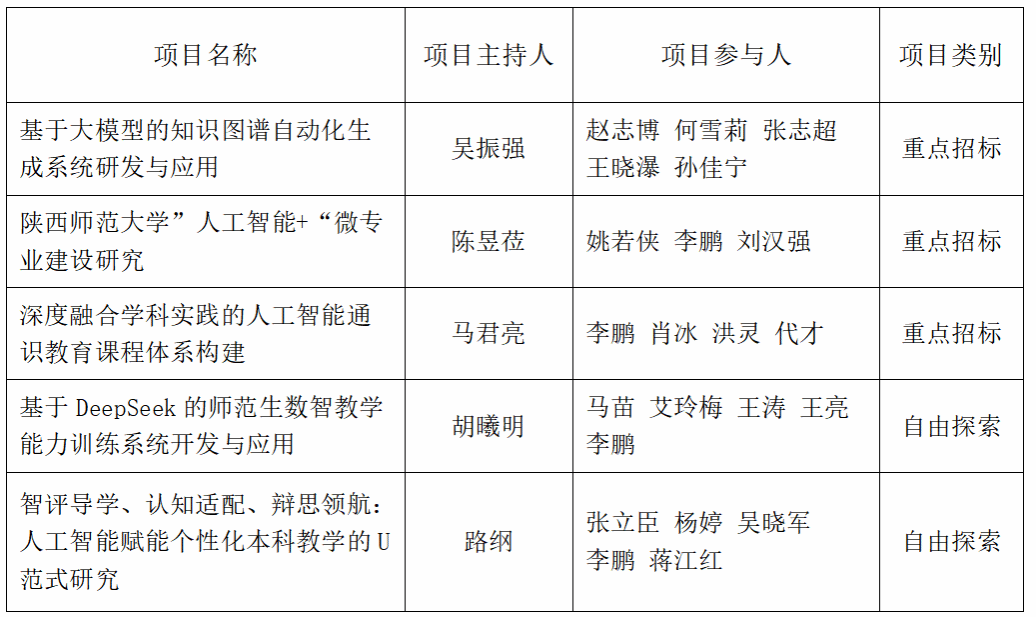 根据《关于开展2025年度人工智能赋能本科教育教学专题研究与实践项目申报工作的通知》相关要求,经项目团队申报、财神捕鱼 推荐、学校资格审核、专家组评审等环节,全校立项校级人工智能教改项目53项,财神捕鱼 牵头主持5项,参与4项。