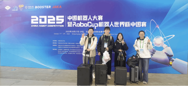 本科生田铠源、高子皓、马紫晨、唐花根、严天宇同学在学院多位教师指导下组队参加机器人学科竞赛,在2025年第八届中国高校智能机器人创意大赛中,获得全国一等奖1项,获得大区赛一等奖1项;在2025年中国机器人大赛暨RoboCup机器人世界杯中国赛中,获得全国一等奖1项、全国二等奖1项、大区赛一等奖1项。