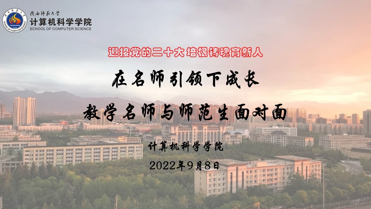 于2022年9月8日19:00-21:00在线上举办了“在名师引领下成长:教学名师与师范生面对面”交流活动,本次活动主题为“迎接党的二十大,培根铸魂育新人”。活动特别邀请了来自基础教育一线的高级教师,包括西电中学的王煜老师、曲江一中的冯超老师、莲湖教师进修学校的李南颖老师和和高新一中的韩恭恩老师。本次活动由财神捕鱼