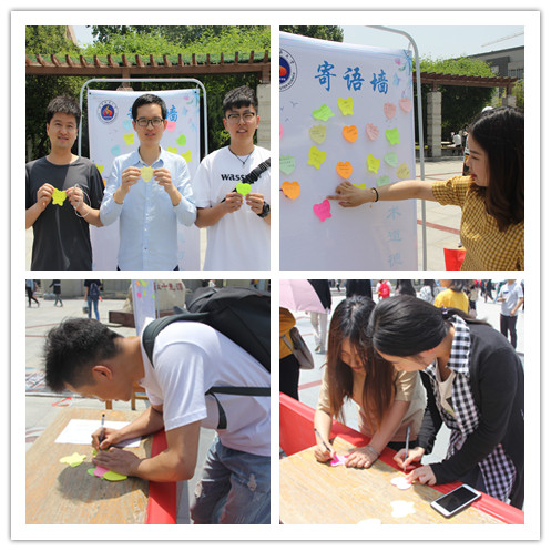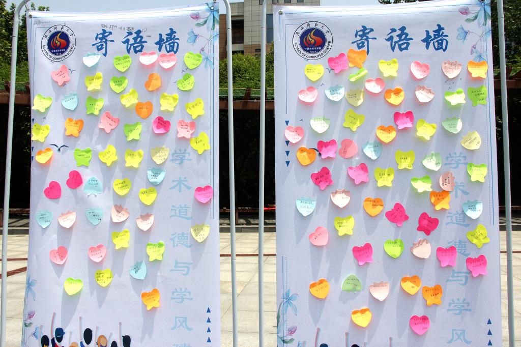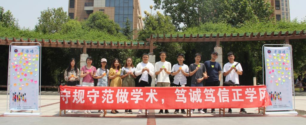 2019年5月17日中午,“学术道德与学风建设寄语墙”活动在阳光苑广场开展。活动现场悬挂起“守规守范做学术,笃诚笃信正学风”的标语,各财神捕鱼