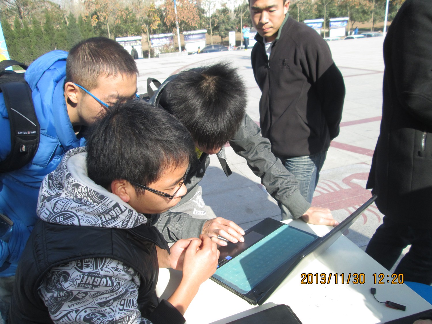 早晨九点,成员们就做好了各项准备,活动一开始就吸引了很多同学前来围观,现场气氛非常热烈,虽然天气很冷,但是大家一点也不在意,都是忙得不亦乐乎,在各自的战场上,挥洒着热情,尽心尽力为大家服务。本次活动共计帮助了50多位同学,解决了“重装系统”,“开机速度慢”,“系统分区”,“装不上个别学习软件”等诸多问题,获得了大家的一致好评。特别是华葱、张辉、向昌成,李晨,刘冬青等几位同学,不仅尽心尽力帮助同学们解决当前难题,还热心的给大家讲解了解决方法及平常会遇到的一些其他电脑问题,使得本次活动充实而圆满。