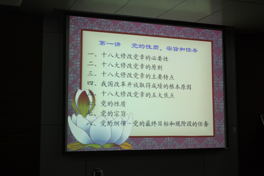 退休教师万保民担任此次课程的主讲人。万保民老师以“党的性质、宗旨和任务”为主题进行了精彩报告,并重点对“党的性质”、“党的宗旨”和“党的纲领”这三个部分进行了详细的讲解。