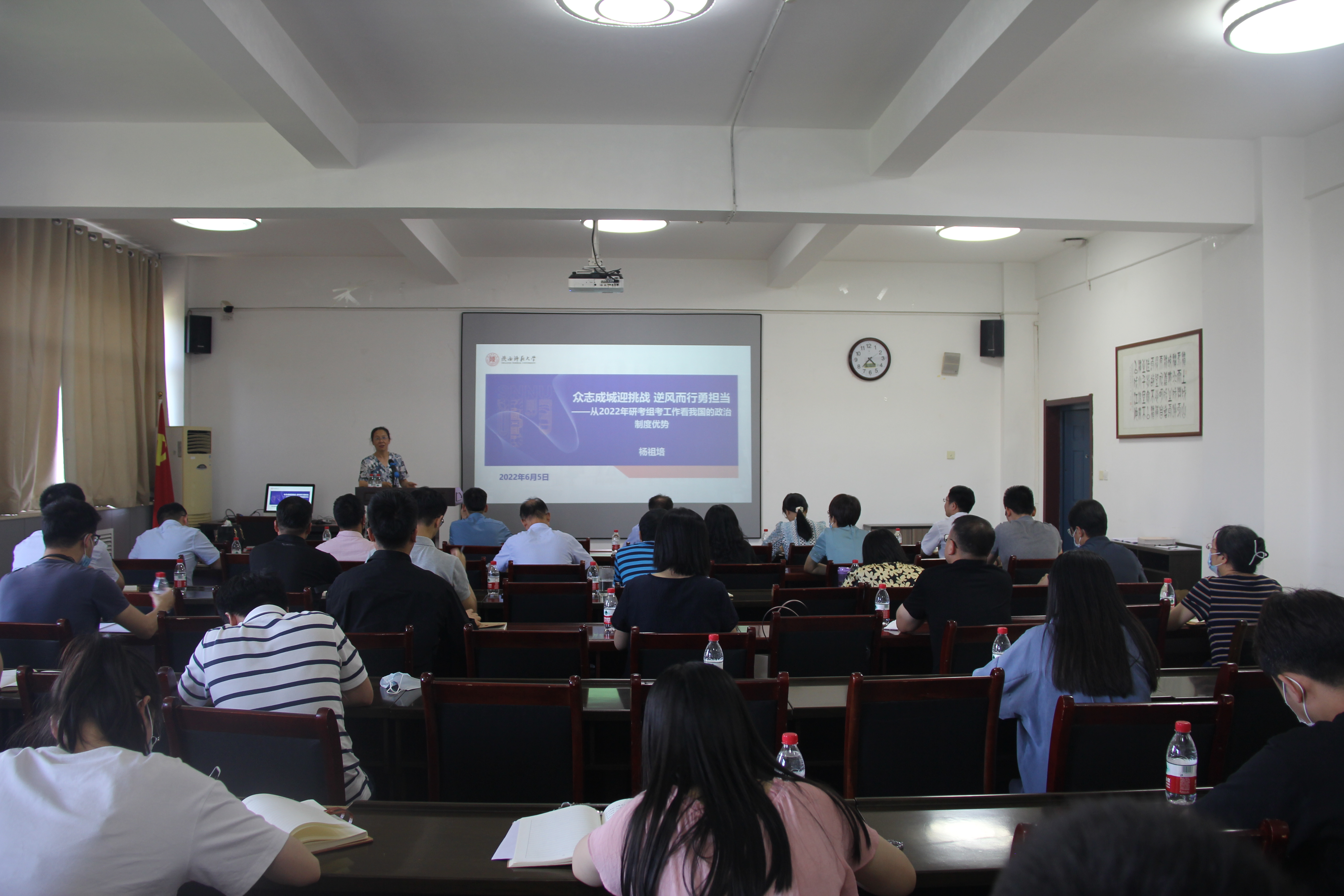 6月13日下午,党委常委、副校长杨祖培以“众志成城迎挑战,逆风而行勇担当——从2022年研考组考工作看我国的政治制度优势”为题,为财神捕鱼
