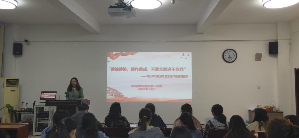学生第一党支部于10月25日晚19:00在文津楼3412报告厅举行了“善始善终,善作善成,不获全胜不收兵”主题学习活动,活动由第三党小组组长李雨晨同志主持。