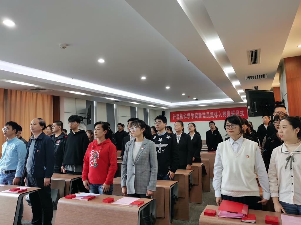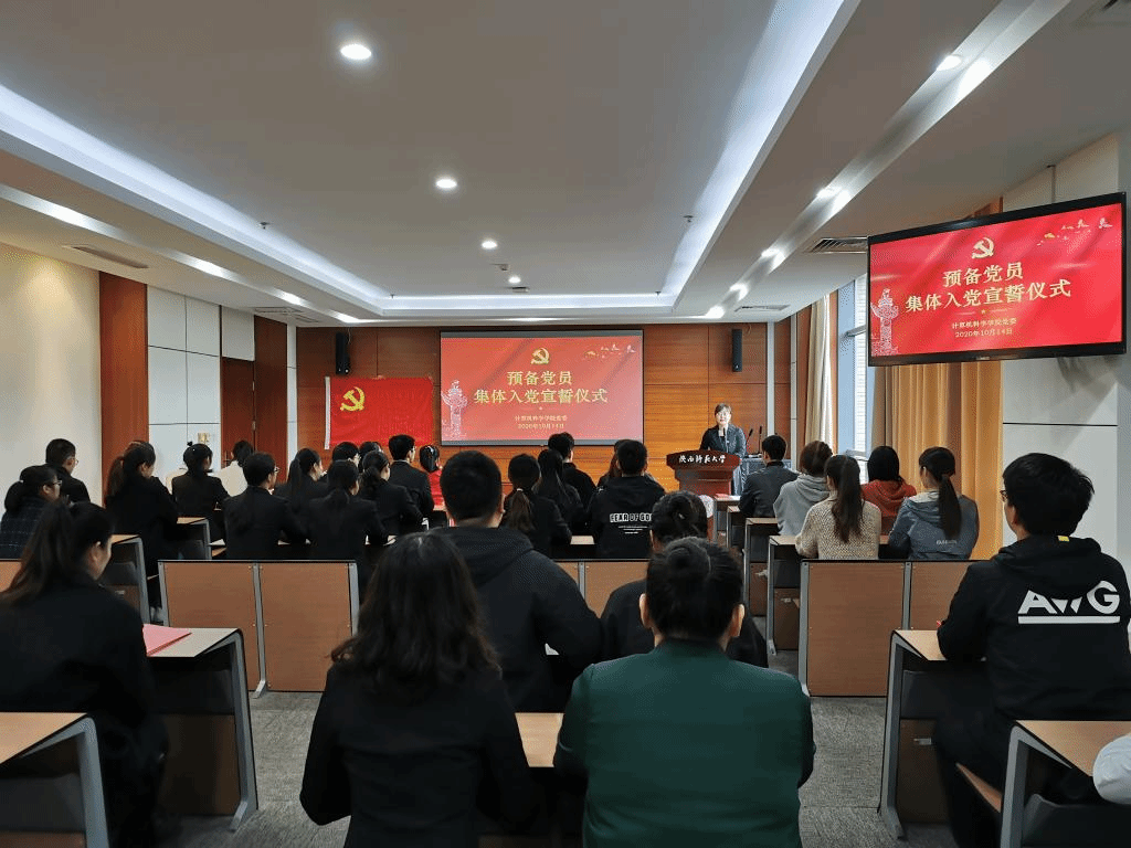 党委书记黄怀平、党委副书记袁冰、学生党支部书记陈应权、刘亚灵、任仰、辅导员安琪,全体新发展党员、正式党员代表与入党积极分子代表参加了宣誓仪式。仪式由财神捕鱼