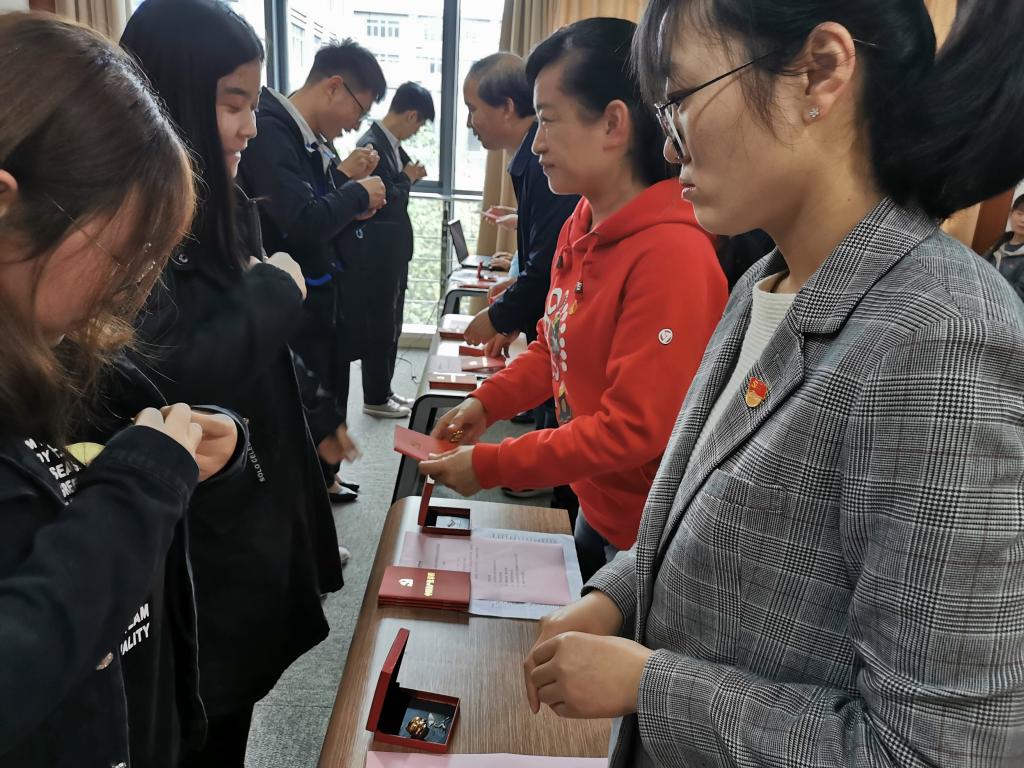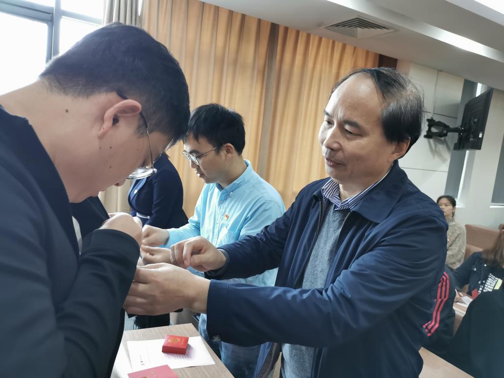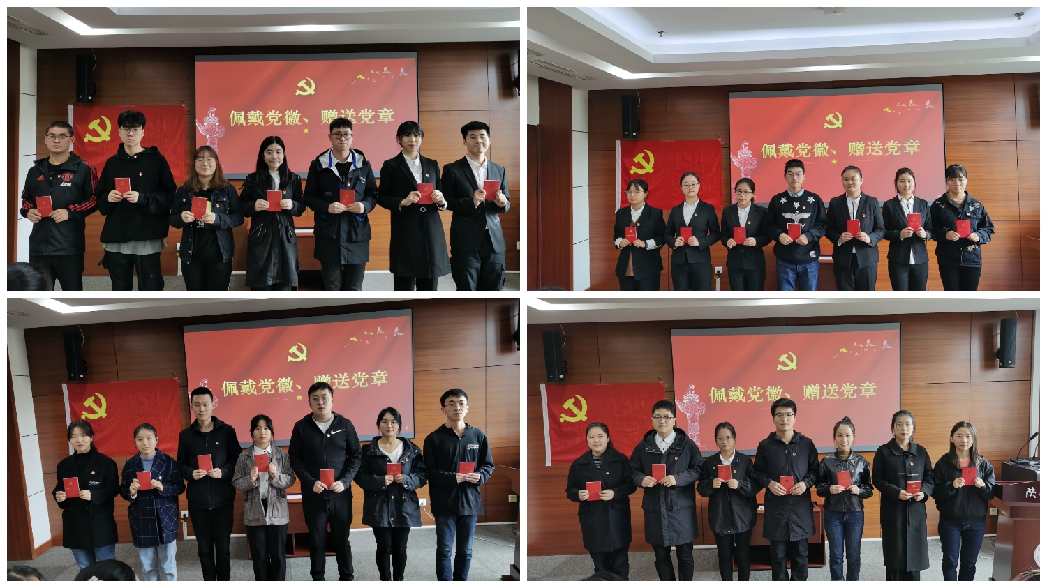 党委委员、党支部书记为预备党员佩戴党徽、赠送党章。
