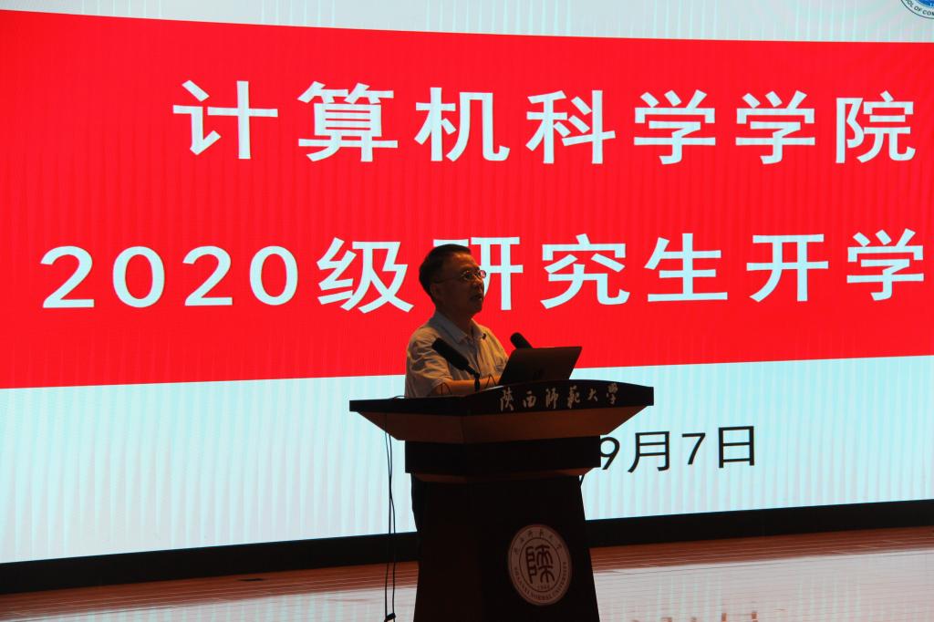 对新生的到来表示热烈欢迎。他在发言中表示,学校是培养学生的主要阵地,而学校的思政和德育工作更是培养人才的重要部分,学生在做学术研究之前必须规范自身德行,时刻谨记“正行 明理 通道”的院训,严格要求自己,朝着目标不懈奋斗。他希望同学们以积极的心态适应全新环境,感受师大人文魅力,争做光荣计科人。