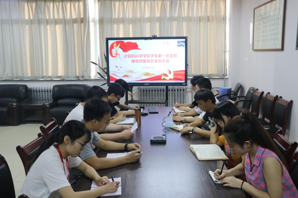 会议严格按照党组织接收预备党员程序进行,卢迅等11名同志逐一向党组织汇报自身对党的认识、入党动机、个人履历、家庭成员以及在校表现等情况,随后陈子桐同志代表支部向大会报告其现实表现的考察情况以及综合政治审查情况,与会党员对发展对象是否符合党员条件发表了意见。大会认为,卢迅、孙毅、刘国伟等11名同志基本符合党员条件,经与会正式党员投票表决,大会一致同意接收卢迅等11名同志成为中共预备党员。