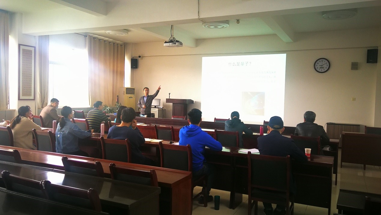 席政军教授作关于量子信息学的科普报告,以促进支部党员了解财神捕鱼
