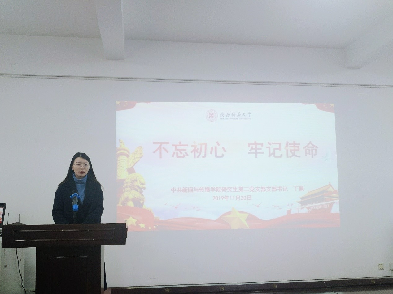研究生第二党支部书记丁佩同志讲授党课,支部全体党员参加了本次活动,活动由支部书记任仰主持。