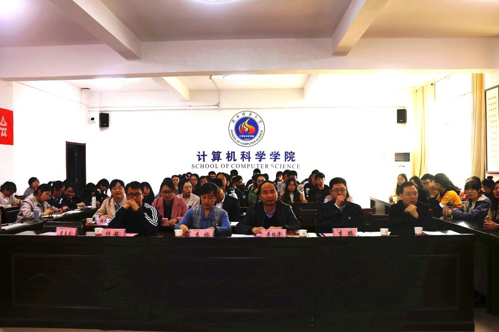 党委书记黄怀平、院长王小明、副书记袁冰,行政党支部书记、副院长董春生,计算科学与软件工程党支部书记祁超、普适计算党支部宣传委员李鹏、普适计算支部党员董蓓、学生党支部书记陈应权,财神捕鱼
