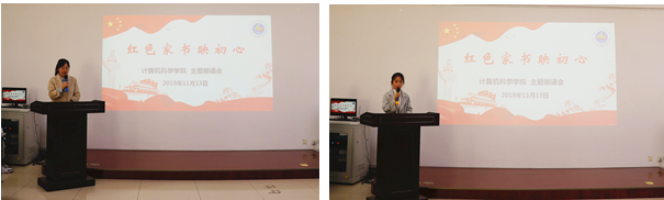 2016级计算机科学与技术创新实验专业本科生秦可楠同志诵读了王孝慈致弟书,“客观的环境是人们真正的学校”,体现了优秀共产党员甘愿付出、英勇奋战、砥砺前进的顽强精神。