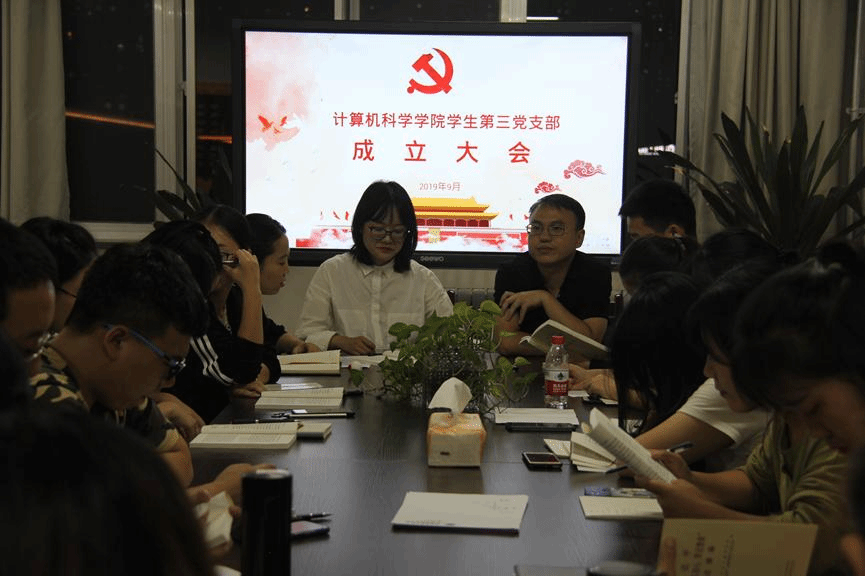 学生第三党支部在文津楼3427召开了支部成立大会暨“不忘初心,牢记使命”主题教育学习。研究生辅导员蒋江红、段思园和支部全体党员参加了本次会议。