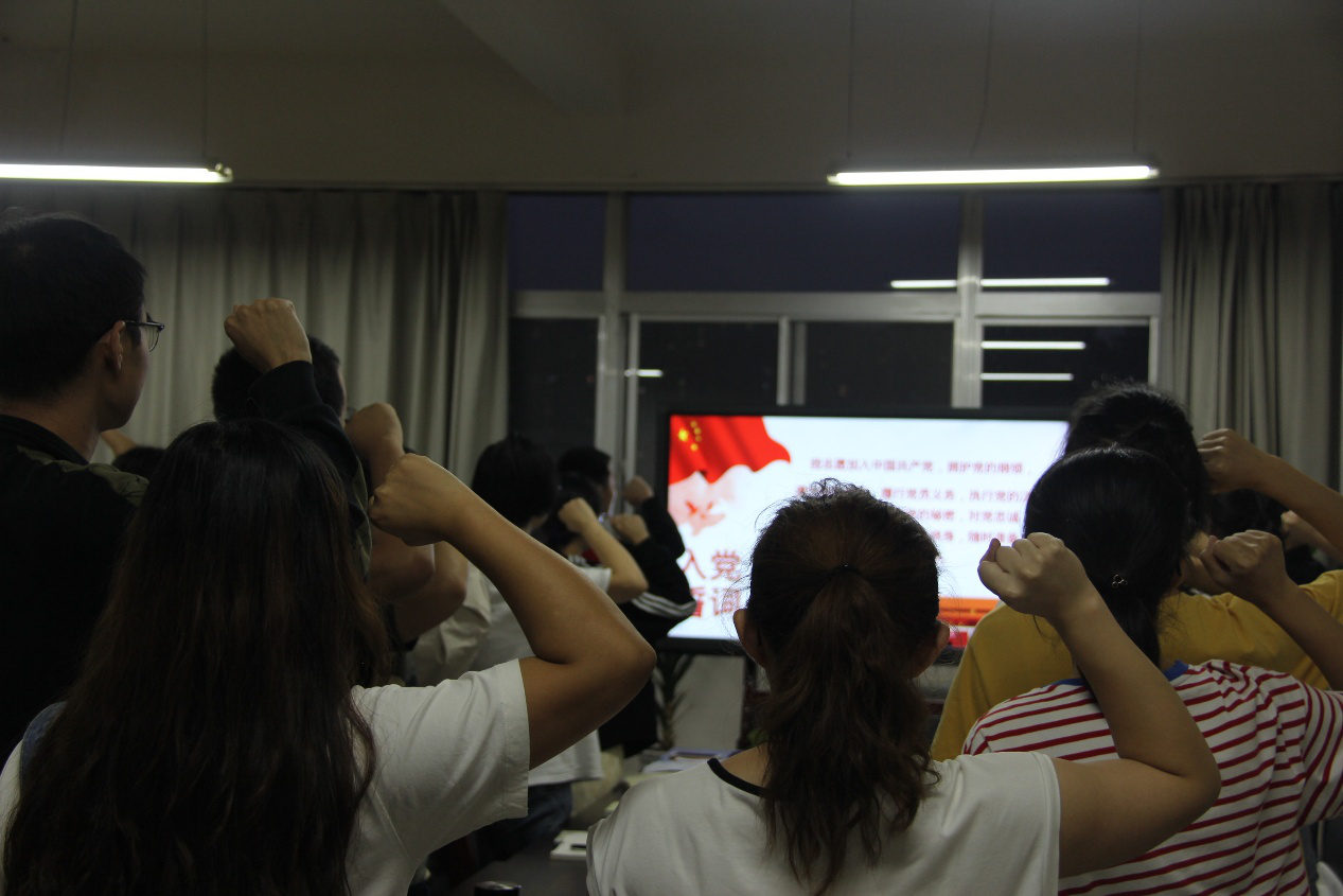 学生第三党支部成立,并介绍了支部情况。三位委员纷纷发言表态,将不忘初心,共同努力,为支部发展献力。随后,组织委员苟元帅同志带领大家重温入党誓词。蒋老师、段老师做了总结发言,对新支部成立表示祝贺,对支部发展提出了建议和要求。