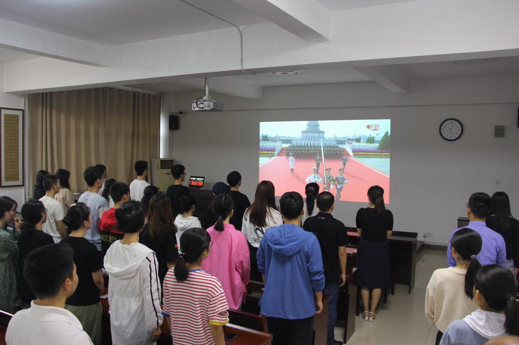 随后盛大的阅兵式和群众游行开始。受阅官兵精神抖擞、受阅方队严阵以待、受阅装备整齐列阵,充分展现了部队的建设成就,观看直播的师生不禁发出一阵阵赞叹;群众游行以时间轴为线,每个方阵展现一个场景、讲述一段故事,观看直播的师生沉浸在国家70年砥砺前行的历程中,为建国70年来经济社会发展的成就感到无比自豪与激动。