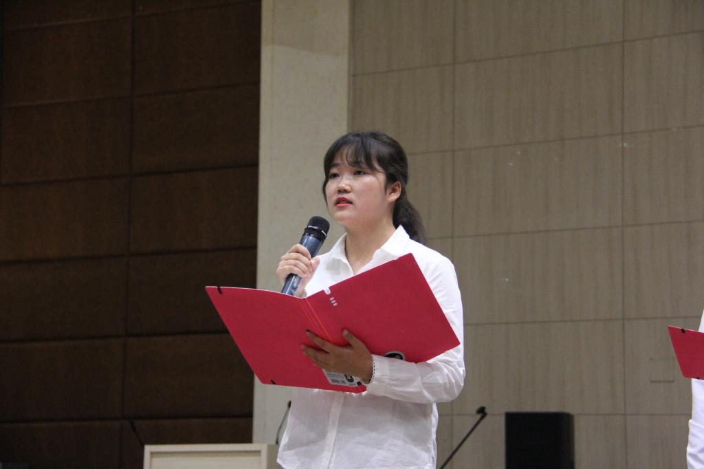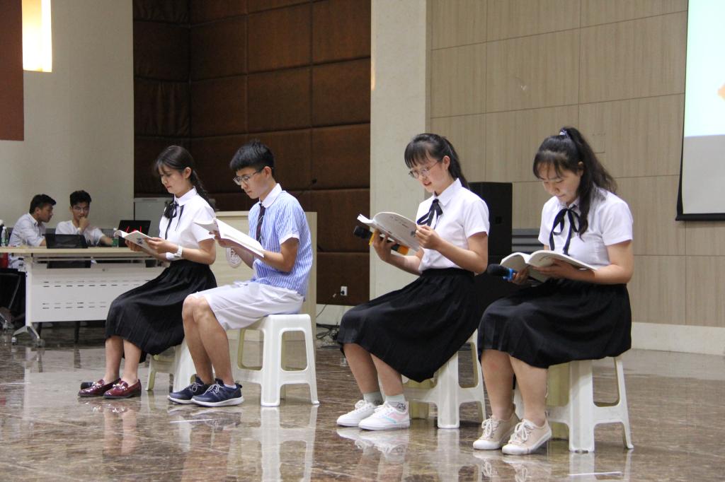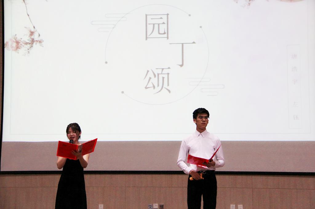 之间的合作与默契表达了认同和欣赏,也给参赛选手提出了自己的建议。郭元老师对同学们的朗诵给予了高度评价,她被同学们稚嫩青涩中的真情深深打动,她认为这种饱含真情实感的表演更胜过单纯的技巧展示。张小东老师指出,诗行只有写在大地上才有温度,青春只有奋斗才有高度,前途只有迈向国家和民族最需要的地方才有宽度,人生只有饱含家国情怀才有气度,他希望同学们能够做一个朗读者,心怀诗和远方;做一个守望者,在中华民族伟大复兴的大任中贡献自己的力量。随后,王阳阳老师宣布了比赛成绩,嘉宾老师们为获奖选手颁发了荣誉证书。