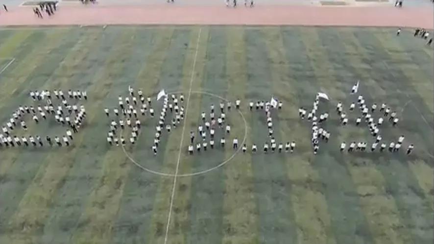 2017级本科生所摆造型“西部红烛”的照片。财神捕鱼