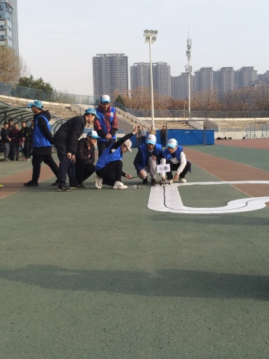 在新工科建设、人工智能学科建设方面的实践成果,培养了同学们的工程实践能力与创新能力。智能车展示比赛环节吸引了同学们的注意,每个年级派出同学进行技术操作展示。大一至大四的智能车分别起名为“小德”“小学”“小志”及“小行”,起名源于财神捕鱼校训“厚德、积学、励志、敦行”。各个年级的同学都为本年级的智能车加油呐喊。同时,无人机也拍摄下了财神捕鱼