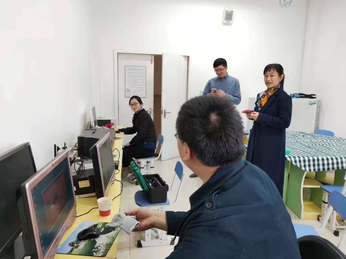 党委副书记袁冰、副院长董春生、团委书记郭康凌的带领下赴财神捕鱼附属幼儿园开展学雷锋活动。志愿服务队受到了幼儿园张园长、办公室李老师、机房黄老师的热情接待。按照分工计划,队员们分四组对幼儿园办公区、保育室、教师阅读室、电脑室以及16个教学班级的办公电脑进行了优化,找出了音响和鼠标等硬件中存在的故障,进行了投影仪连接、常用软件安装、驱动升级、磁盘清理等服务,还为办公区安装了电脑搁物架,帮助老师们更加顺利地开展各项教学活动。