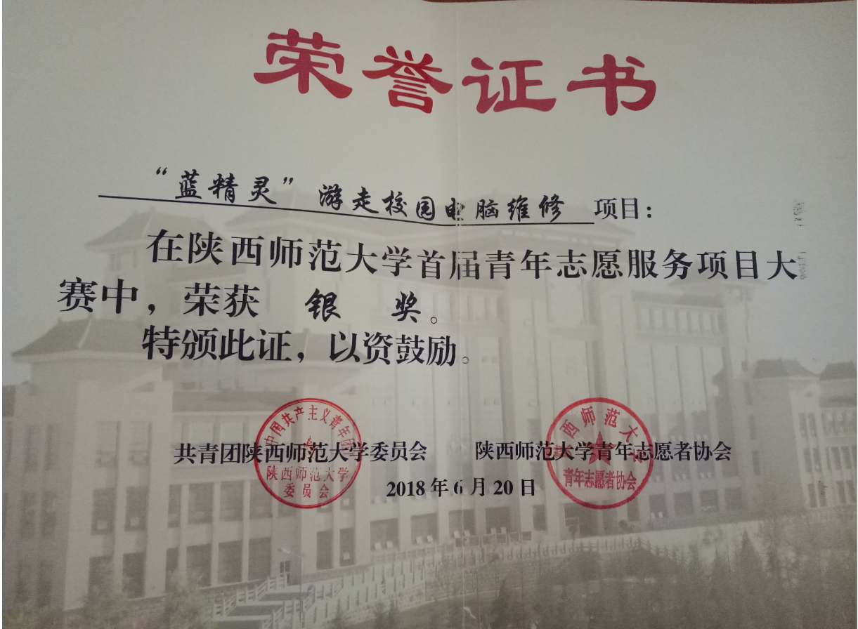 学生组织蓝精灵志愿服务队的志愿服务项目获评财神捕鱼