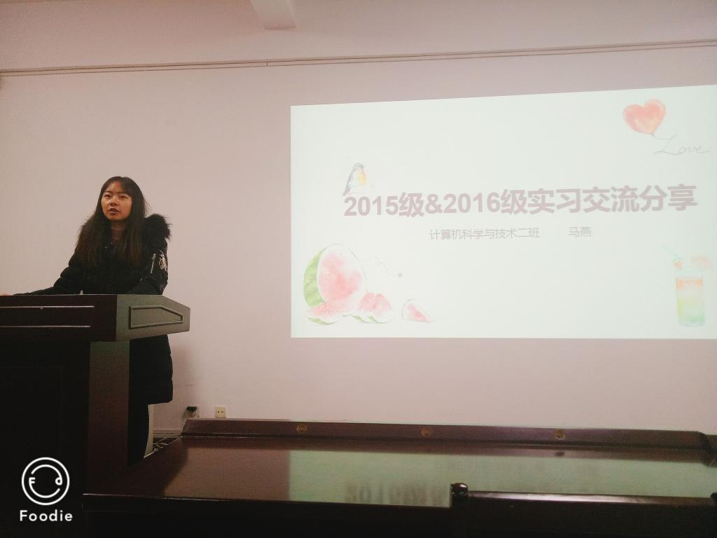 报告厅举办了教育实习主题班会。全体学生参加了此次班会。出席此次班会的还有2015级三位优秀实习生高一华、马燕、黄娅倩和2016级计科专业班主任郝飞老师。此次班会由郝飞老师主持。