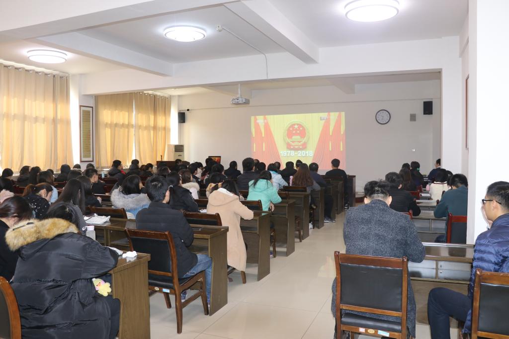 报告厅集中收看庆祝改革开放40周年大会直播。财神捕鱼