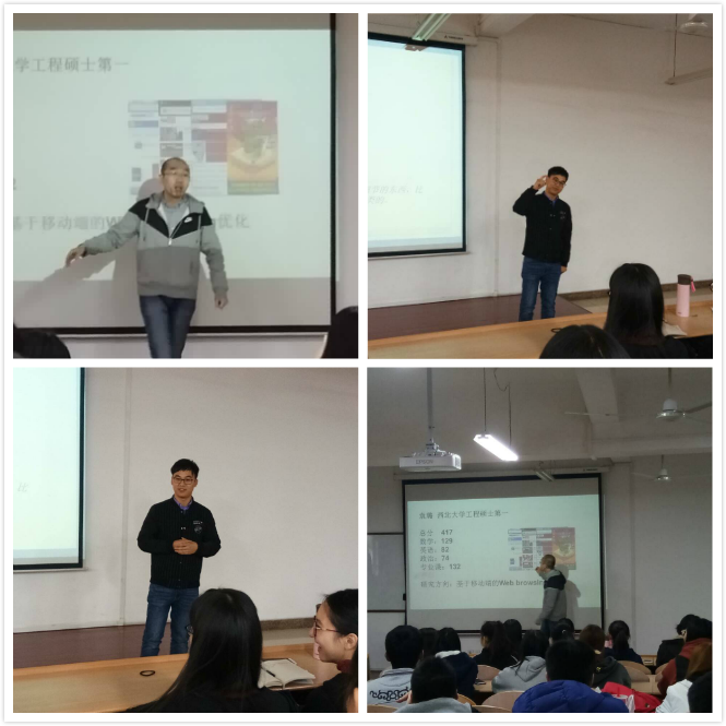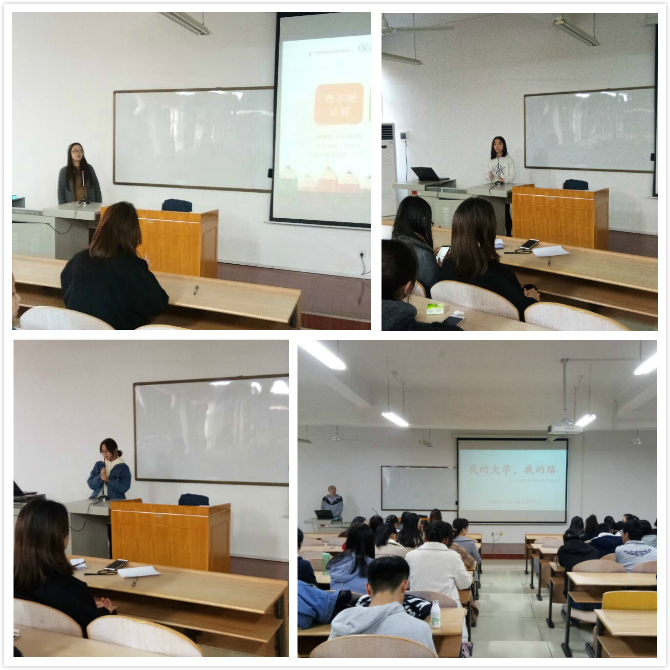2017级计创班班主任任杰老师主持,由袁璐、秦晴、姜宇恒、雷艳婷四位学姐主讲。此外,2017级辅导员陈应权老师以及2017级计算机科学与技术(创新实验班)专业全体同学共同参加了本次分享会。