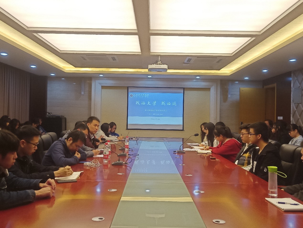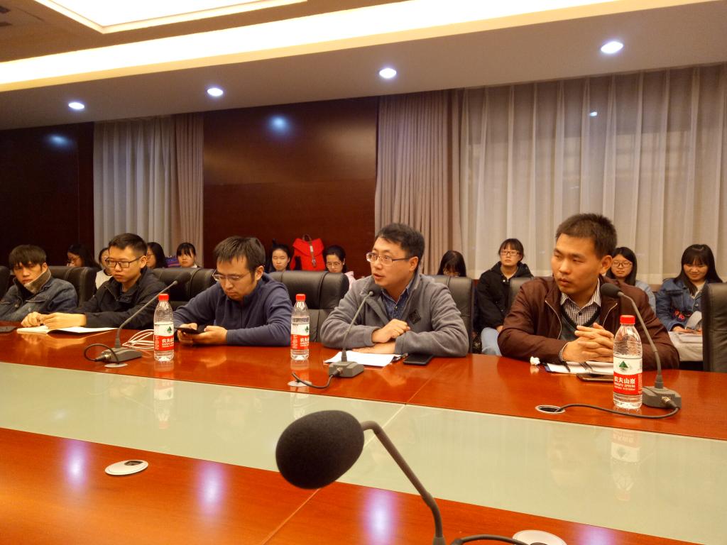 郭康凌首先介绍了本次会议的主题,并对两个专业同学进行成长规划摸底的情况进行了汇报,详细宣读了同学们计划考研深造、出国深造、考公务员、就业等所占比例。她对三位专业教师的到来表示欢迎,希望专业教师能结合自我学习与工作的切身感受,为同学们讲经验、讲方法,激发同学们的学习斗志,辅导员与班主任一起指导和帮助学生做好职业规划,共同促进两个专业学生的成长发展。