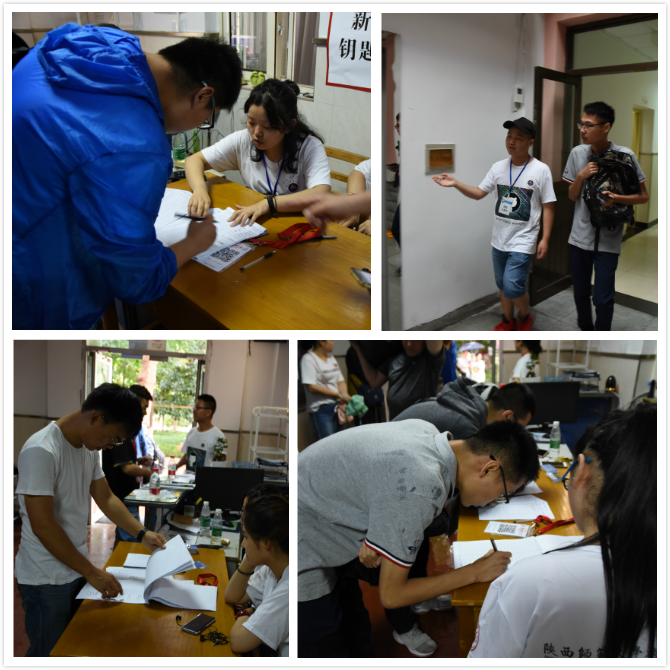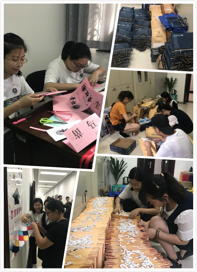 迎新工作小组精心准备,真正做到以心迎新,并召开协调会,精心部署,全局规划,以确保迎新工作高效顺利地进行。经过选拔和认真培训后的志愿者们,牺牲暑假时间,提前返校,全方位进行迎新准备工作。志愿者们一丝不苟地印发装订《我们的家风故事》等迎新材料,精心设计文化展板,仔细张贴文化海报,悉心布置新生宿舍。他们既能肩扛背包、手挑行李,陪伴新生办好报到手续、入住宿舍,也能细致耐心地为新生及家长解答疑问、恳切建议。就是这样一群可爱的人,整装待发,以最好的姿态迎接最青春的2018级新生。